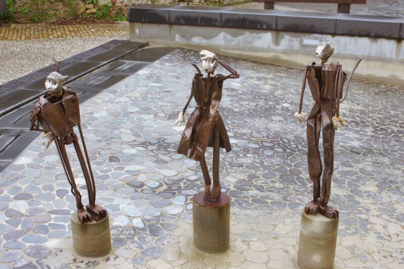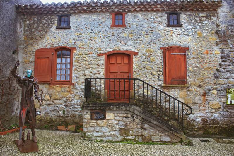 Saint Dominique est représenté par une statue en métal devant ce qui a été sa demeure. C’est ce qui rend la visite de ce village insolite. L’histoire y est racontée par différentes statues de l’artiste Loïc Tellier.